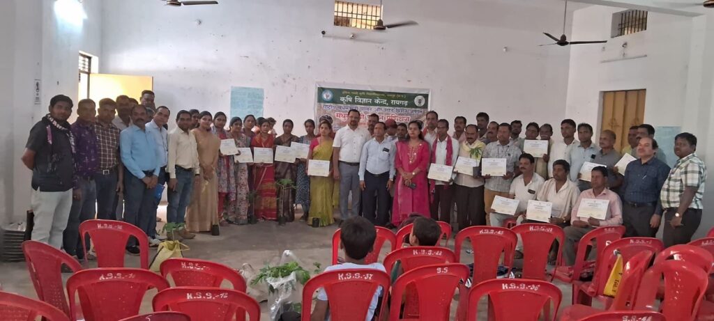 इंदिरा गाँधी कृषि विश्वविद्यालय रायपुर के कुलपति डॉ. गिरीश चंदेल जी के मार्गदर्शन में डॉ. विवेक त्रिपाठी (निदेशक अनुसन्धान संचालक) एवं डॉ. एस.एस. टुटेजा (निदेशक विस्तार सेवाएँ) के निर्देशन में “ राष्ट्रीय मधुमक्खी पालन एवं शहद मिशन ” के तहत् कृषि विज्ञान केंद्र –बोइरदादर रायगढ़ द्वारा दिनांक- 19.03.2026 से 25.03.2026 तक सारंगढ़-बिलाईगढ़ जिले के 50 महिला एवं पुरुष कृषकों हेतु 7 दिवसीय प्रशिक्षण सह अध्ययन भ्रमण कार्यक्रम आयोजित किया गया | जिसका समापन समारोह दिनांक- 25.03.2026 को डॉ. संजय कन्नौजे, कलेक्टर एवं जिलाधीश, श्री संजय भूषण पांडे, माननीय अध्यक्ष- जिला पंचायत सारंगढ़- बिलाईगढ़, श्री उमेश साहू, डिप्टी कलेक्टर, जिला- सारंगढ़-बिलाईगढ़ की गरिमामय उपस्थिति में संपन्न हुआ | उक्त कार्यक्रम में डॉ. बी.एस.राजपूत, वरिष्ठ वैज्ञानिक एवं प्रमुख, कृषि विज्ञान केन्द्र – रायगढ़, श्री आशुतोष श्रीवास्तव, उप संचालक कृषि, श्रीमती आकांक्षा उपाध्याय, सहायक संचालक उद्यानिकी, जिला सारंगढ़-बिलाईगढ़, डॉ. के.के. पैकरा, डॉ. सी.पी.एफ. सोलंकी एवं डॉ. भोगेश्वरी साहू, वैज्ञानिक, कृषि विज्ञान केंद्र- रायगढ़, श्री दीपक कुमार बंजारे, प्र.वरिष्ठ कृषि विकास अधिकारी सारंगढ़, श्री जे.पी. गुप्ता, श्री बोधराम सतनामी, श्री मनीराम राम पैंकरा, श्री भागवत प्रसाद सोनी, कृषि विकास अधिकारी सारंगढ़ एवं संबंधित क्षेत्रों के ग्रामीण कृषि विस्तार अधिकारी एवं आत्मा योजनान्तर्गत कार्यरत बी.टी.एम एवं ए.टी.एम. उपस्थित रहे |