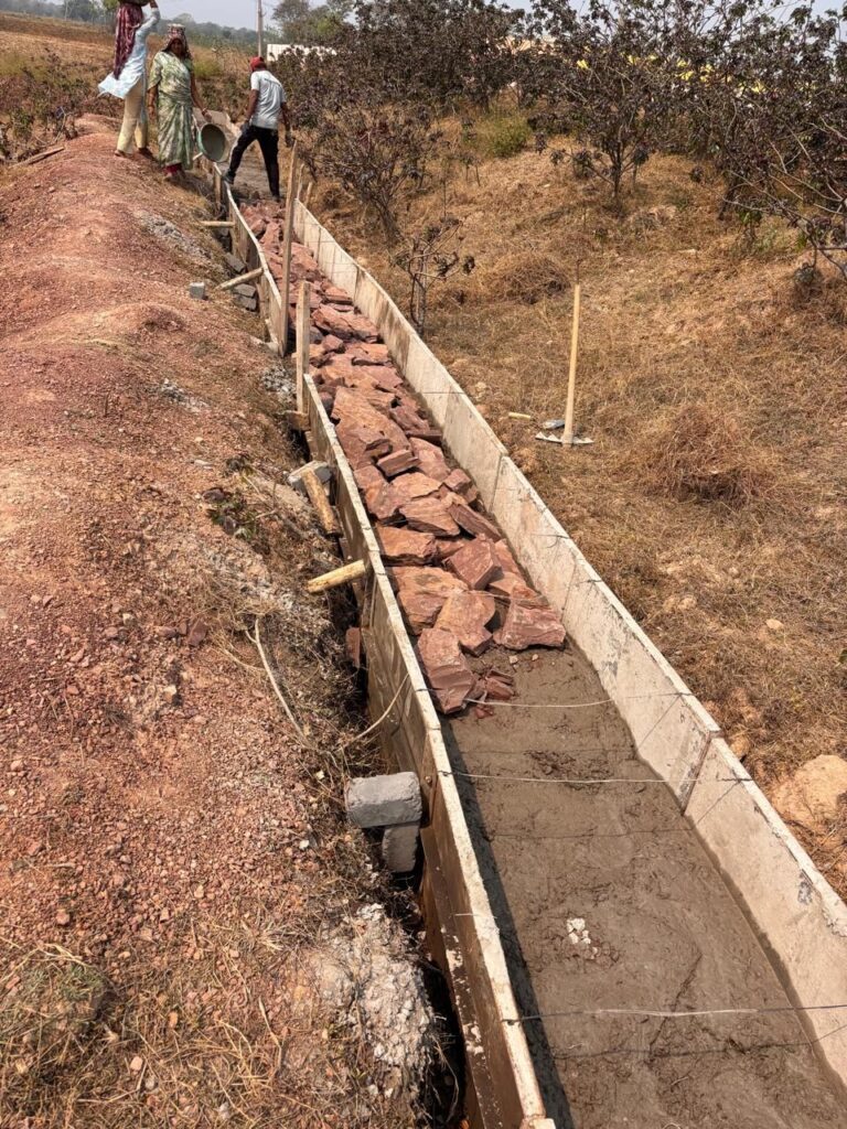 जानकारी के अनुसार, तालाब के तटबंध निर्माण कार्य में जहां गिट्टी, सीमेंट और रेत का उपयोग होना था, वहां सरपंच प्रमोद चंद्रा द्वारा बड़े-बड़े पत्थरों का उपयोग कर ऊपर से मसाला डालकर छिपाने का प्रयास किया जा रहा था। बताया जा रहा है कि निर्माण कार्य के शुरुआती चरण में ही अनियमितताएं खुलकर सामने आने लगीं, जिससे पूरे निर्माण कार्य की पारदर्शिता और गुणवत्ता पर सवाल उठने लगे।
