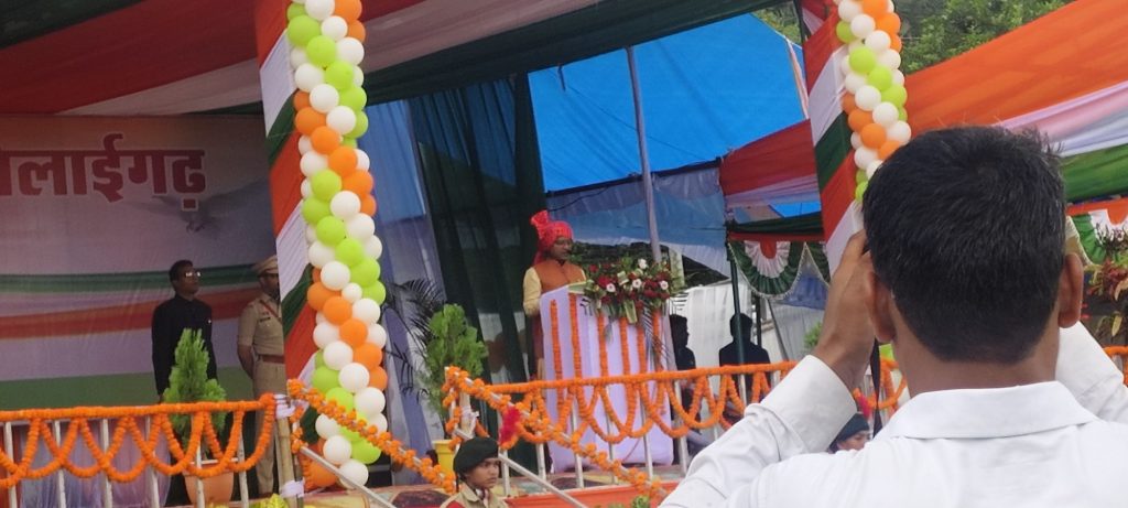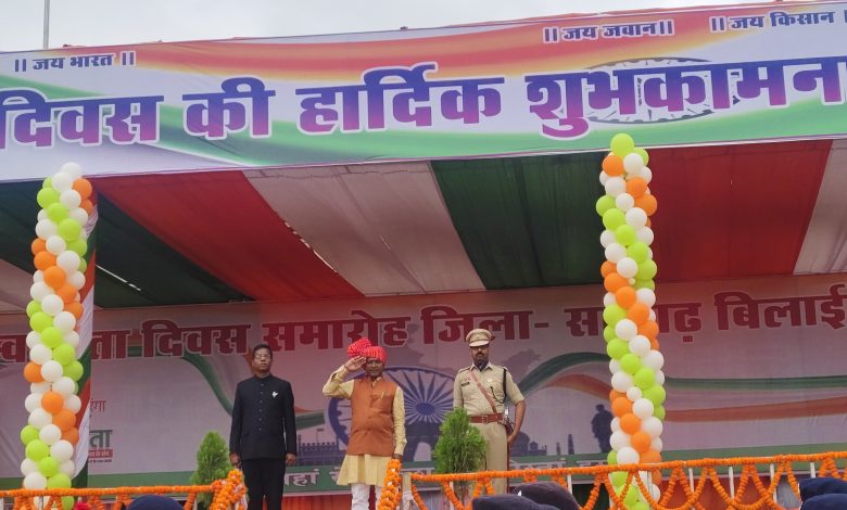 सारंगढ़ बिलाईगढ़, 15 अगस्त 2025/ आजादी के पर्व को जिला मुख्यालय सारंगढ़ में हर्षौल्लास के साथ मनाया गया। स्वतंत्रता दिवस पर आयोजित जिला स्तरीय कार्यक्रम के मुख्य अतिथि लोकसभा सांसद राधेश्याम राठिया ने खेलभाठा मैदान में तिरंगा झंडा का ध्वजारोहण किया। पुलिस, एनसीसी, स्काउट सहित स्कूली बच्चों ने परेड कर मुख्य अतिथि की सलामी दी। सांसद राठिया ने परेड निरीक्षण कर समारोह में उपस्थित सभी नागरिकों, स्कूली बच्चों आदि का अभिवादन किया। इसके बाद हर्ष फायर किया गया। मुख्य अतिथि राठिया ने छत्तीसगढ़ के मुख्यमंत्री जी के आम जनता के नाम संदेश का वाचन किया। तदोपरांत सांसद राधेश्याम राठिया ने हर घर तिरंगा, सुपोषित सारंगढ़ बिलाईगढ़ आदि शब्दों से सजे गुब्बारों को आसमान में उड़ाया और परेड कमांडरों से परिचय प्राप्त किया और शहीद परिवार के परिजनों को शाल श्रीफल भेंटकर उनका वंदन किया। इस दौरान कलेक्टर डॉ संजय कन्नौजे और पुलिस अधीक्षक आञ्जनेय वार्ष्णेय उपस्थित थे।