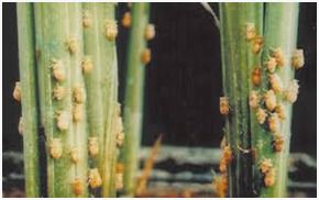 - भूरा माहू:- गभोट एवं बाली की अवस्था में यह कीट धान की फसल में दिखाई देते है | यह पौधों से पोषक रस चूस कर पौधों को कमजोर कर देता है | इस कीट के अधिक प्रकोप से उत्पादन की कमी देखने को मिलती है | इस कीट से फसल को बचाव हेतु ब्युपरोफेजीन 25 प्रतिशत एस.सी. 800 मि.ली. / हेक्टेयर का प्रयोग करें । इसके अलावा आवश्यकता अनुसार पाइमट्रोजिन 50 डब्ल्यू.जी. 300 ग्राम या ट्राईफ्लूमिथोपाइरम 10 प्रतिशत एस.सी. 235 मि.ली./हे. का छिड़काव करें । धान के खेत में 2 दिन पानी भरकर पानी निकासी 2 से 3 अंतराल पर करने में कीटो की बढ़वार को कम कर सकते है ।