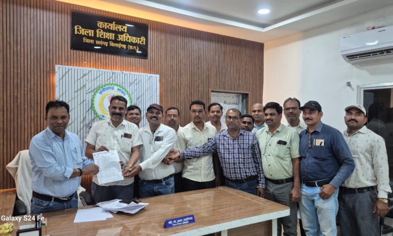 छत्तीसगढ़ प्रदेश संयुक्त शिक्षक संघ जिला सारंगढ़ बिलाईगढ़ का प्रतिनिधिमंडल स्थानीय शिक्षक संवर्ग के समस्याओं के निदान की दिशा में जिलाध्यक्ष श्री चोखलाल पटेल जी की अगुआई में जिला शिक्षा अधिकारी श्री जे आर डहरिया से मिला और बिंदुवार समस्याओं व सुझावों का ज्ञापन सौंपने के साथ ही उनसे उन्मुक्त वातावरण में चर्चा परिचर्चा की!