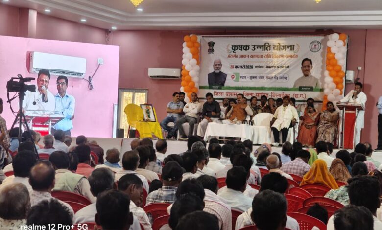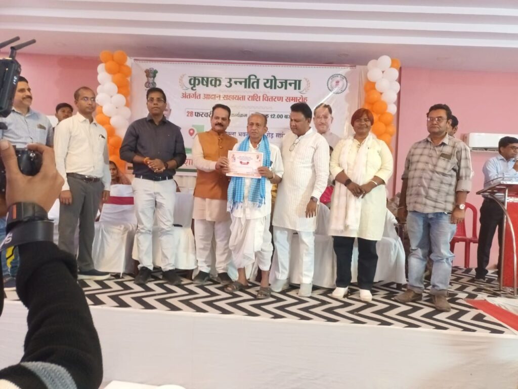 जिला सारंगढ़-बिलाईगढ़ में “कृषक उन्नति योजना” अंतर्गत कृषि आदान सहायता राशि वितरण समारोह का भव्य आयोजन किया गया। डॉ. संजय कन्नौजे, कलेक्टर महोदय, सारंगढ़- बिलाईगढ़ के मार्गदर्शन में कार्यक्रम शुक्ला भवन, विशालपुर, रायपुर रोड़ सारंगढ़ में आयोजन हुआ। उप संचालक कृषि महोदय ने योजना की विस्तृत जानकारी दिए। कार्यक्रम माननीय श्री संजय भूषण पाण्डेय, अध्यक्ष, जिला पंचायत सारंगढ-बिलाईगढ़ की अध्यक्षता में सम्पन्न हुआ। उन्होंने अपने संबोधन में कहा कि कृषक उन्नति योजना से किसानों की आर्थिक सशक्तिकरण की दिशा में एक महत्वपूर्ण पहल है। उन्होंने किसानों को आधुनिक कृषि तकनीकों को अपनाने, फसल विविधीकरण एवं शासकीय योजनाओं का अधिकाधिक लाभ लेने हेतु प्रेरित किया।