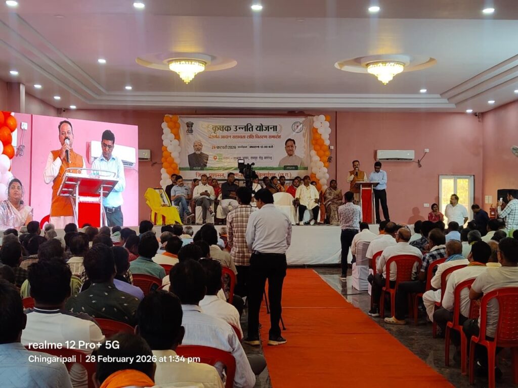 खरीफ विपणन वर्ष 2025 में सारंगढ़-बिलाईगढ़ जिले के 84058 किसानों ने अपना कुल 442948.84 मे.टन धान विक्रय किया जिसके अंतर राशि का भुगतान 28 फरवरी 2026 को ’’कृषक उन्नती योजना’’ के तहत माननीय मुख्यमंत्री श्री विष्णुदेव साय जी के द्वारा खेल मैदान, रहंगी, वि.ख. बिल्हा, जिला बिलासपुर से जिला सारंगढ़-बिलाईगढ़ के किसानों के खाते में सीधे डीबीटी के माध्यम से 3237.96 लाख रुपये का हस्तांतरण किया गया। कार्यक्रम का सीधा प्रसारण विडियो कान्फ्रेंसिंग के माध्यम से जिला सारंगढ़-बिलाईगढ़ के शुक्ला भवन, विशालपुर, रायपुर रोड़ सारंगढ़ एवं जनपद पंचायत बरमकेला सभाकक्ष तथा जनपद पंचायत बिलाईगढ़ के सभाकक्ष से तीनो विकासखण्ड से कार्यक्रम में सीधा प्रसारण से जुड़े रहे।