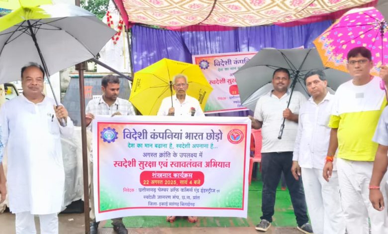 अगस्त क्रांति दिवस के अवसर पर छत्तीसगढ़ चेंबर ऑफ कॉमर्स एवं इंडस्ट्रीज तथा स्वदेशी जागरण मंच की प्रांत इकाई द्वारा “विदेशी कंपनी भारत छोड़ो अभियान” का आयोजन किया गया। इसी क्रम में सारंगढ़ जिला इकाई के चेंबर ऑफ कॉमर्स में बड़ी संख्या में व्यापारी एकत्र होकर विदेशी कंपनियों का विरोध प्रदर्शन किया।
