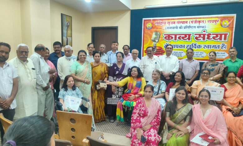रायपुर साहित्य सृजन संस्थान की काव्य संध्या में कवियों ने वृंदावन हॉल में कविताओं से सृजन का संदेश दिए ….