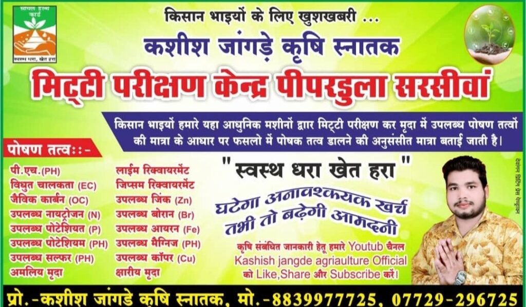 उप संचालक कृषि सारंगढ़ द्वारा अपील की है – किसान भाइयों हमें अपनी खेत की मिट्टी का जाँच कराकर फसलों में संतुलित और अनुशंसित खादों का उपयोग करना है, फसल अवशेष (पैरा/पराली) को नही जलाने एवं खेती में हरी खाद का उपयोग को बढ़ाने तथा ग्रीष्मकालीन में फसल चक्र के रूप में दलहन-तिलहन फसलों को अपनाना होगा |