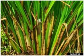 1. शीथ ब्लाइट (चरपा) :- यह रोग धान में कंसे निकलने की अवस्था से गभोट की अवस्था तक देखा जा सकता है । रोग प्रकोपित खेत में पानी की सतह से आरम्भ होकर पर्णच्छद पर ऊपर की ओर फैलता है और अंततः पौधा रोगग्रस्त होकर झुलस जाता है । रोग लक्षण पर्णच्छद व पत्तियों पर दिखाई देते हैं । पर्णच्छद पर 2-3 से.मी. लम्बे, 0.5 से.मी. चौड़े भूरे से बदरंगे धब्बे बनते हैं । प्रारंभ में धब्बे का रंग हरा-मटमैला या ताम्र रंग का होता है । बाद में बीच का भाग मटमैला हो जाता है | इस रोग के नियंत्रण हेतु हेक्साकोनाजोल कवकनाशी (2 मि.ली. / ली.) या थायोफ्लूजामाइड का छिड़काव 10-12 दिन के अन्तर से करें ।