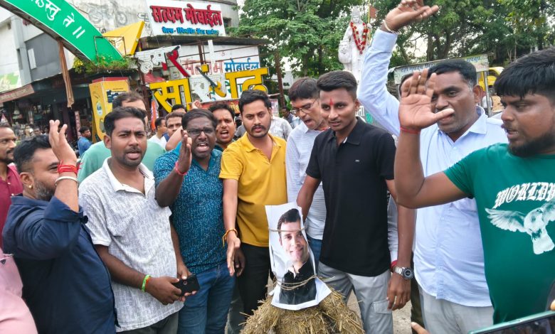सारंगढ़ : विगत दिनों बिहार के दरभंगा मे कांग्रेस एवं आर जे डी पार्टी दवारा चुनावी रैली मे भारत के प्रधानमंत्री नरेंद्र मोदी जी के स्व. माता जी के ऊपर अभद्र टिप्पणी किया गया था जिसके विरोध मे आज शाम 4 बजे प्रदेश भाजयुमो के आह्वान पर जिला भाजयुमो सारंगढ़ द्वारा नगर के भारत माता चौक मे पुतला दहन किया गया। जिसमे राहुल गाँधी एवं तेजस्वी यादव का पुतला दहन किया गया।